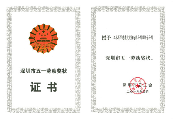 江蘇華建深圳公司被授予深圳市五一勞動(dòng)獎(jiǎng)狀