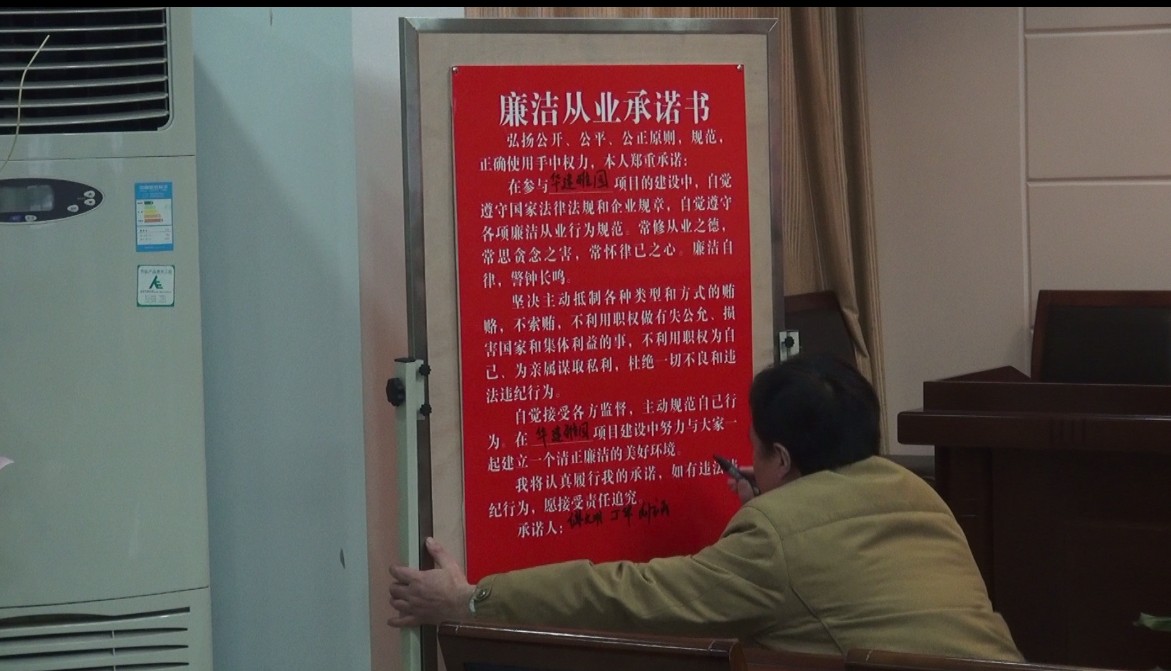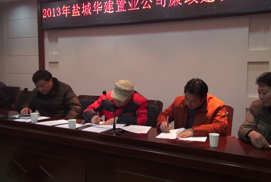 為貫徹落實(shí)習(xí)近平總書記在十八屆中央紀(jì)委二次全會上的重要講話精神,在春節(jié)即將到來之際,公司紀(jì)委書記錢啟明、紀(jì)委副書記、紀(jì)監(jiān)室主任陳緒寶23日和25日專程到鹽城華建置業(yè)公司、揚(yáng)州華盛置業(yè)公司開展專題廉政警示教育,并送去一批廉政警示掛牌、桌牌。兩個(gè)地產(chǎn)公司全體人員簽署了廉政承諾書,鹽城四家乙方總包單位簽署了廉政響應(yīng)書,甲乙雙方簽訂了廉政合同。