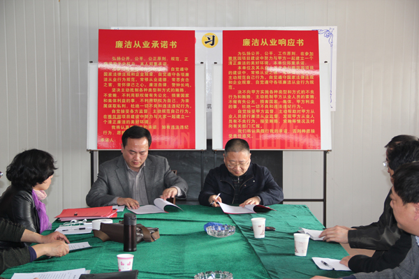 程杰董事長在儀式結(jié)束后的講話中特別強調(diào)了誓詞中的“三個常”,即常修從業(yè)之德,常思貪念之害,常懷律己之心,并提出五點要求:一是公司員工要加強學(xué)習(xí),提高覺悟,本著對單位、事業(yè)和家人負(fù)責(zé)的態(tài)度時刻提醒自己廉潔自律;二是公司內(nèi)部要加強制度建設(shè),營造按制度運作、依規(guī)矩辦事的環(huán)境;三是經(jīng)營團(tuán)隊要管好自己,管好部下,不能有僥幸心理;四是違法違紀(jì)等問題一經(jīng)發(fā)現(xiàn)將嚴(yán)查嚴(yán)究、決不姑息;五是希望施工方、監(jiān)理方等相關(guān)合作單位和公司員工共同遵守廉潔自律協(xié)議,公平、公開、公正,一切按規(guī)章制度辦事,共同打造美好工作局面。