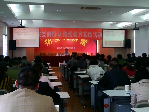 揚(yáng)安集團(tuán)舉辦黨的群眾路線教育實(shí)踐活動專題講座 時間:2014-04-034370 4月3日上午,揚(yáng)安集團(tuán)舉辦黨的群眾路線教育實(shí)踐活動專題講座,黨委書記李幼杰主持,揚(yáng)州市委黨校王淦教授主講“堅持群眾路線,為民務(wù)實(shí)清廉”。講座主會場設(shè)在集團(tuán)總部,黨委領(lǐng)導(dǎo)班子全體成員、總部部室管理人員、在揚(yáng)分(子)公司黨員、入黨積極分子代表70余人參加;駐外分公司黨支部采用電話連線形式,組織黨員在各分會場聆聽。
