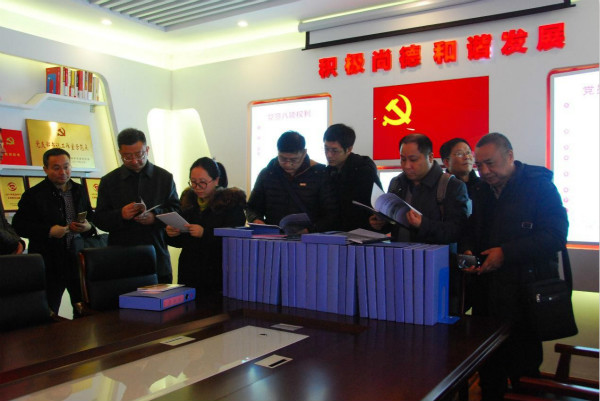 錢啟明一行參觀了長(zhǎng)江水務(wù)公司服務(wù)大廳、第五黨支部黨員之家和吳書記工作室。通過(guò)觀摩工作室的“1+3”黨建模式,實(shí)地了解“支部概況”“兩學(xué)一做”“黨員園地”“學(xué)習(xí)園地”等板塊展示,深入學(xué)習(xí)了第五黨支部的特色黨建工作成果。