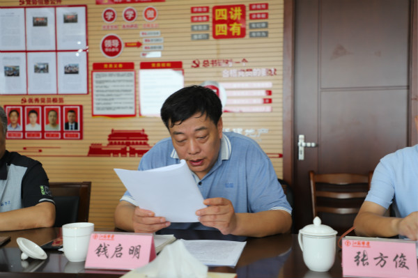 會上,錢啟明匯報了上半年公司三大攻堅戰(zhàn)、形式主義官僚主義專項整治、黨建和黨風廉政建設(shè)、企業(yè)領(lǐng)導人兼職整改、企業(yè)層級壓縮和企業(yè)混改推進等重要工作任務(wù)完成情況。揚州分公司就落實“兩個責任”,加強項目黨建和黨風廉政建設(shè)工作情況進行了匯報。